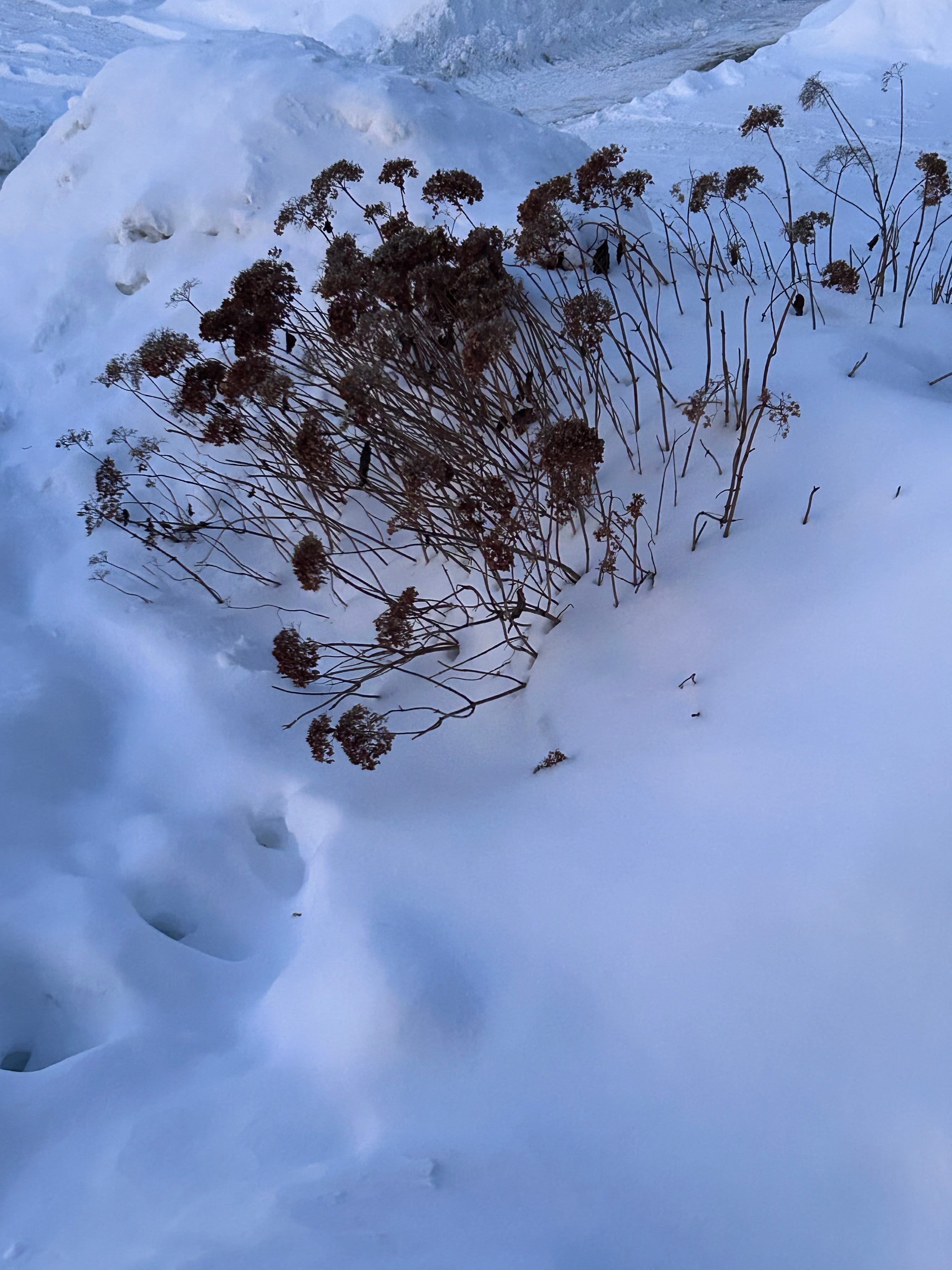 2026, 7:00 am, -29C. This snowbank is only 4 feet tall, others on the street are double that, they build up inch by inch with each flurry. I slip down the street, stepping forward, sliding back. January is like that.